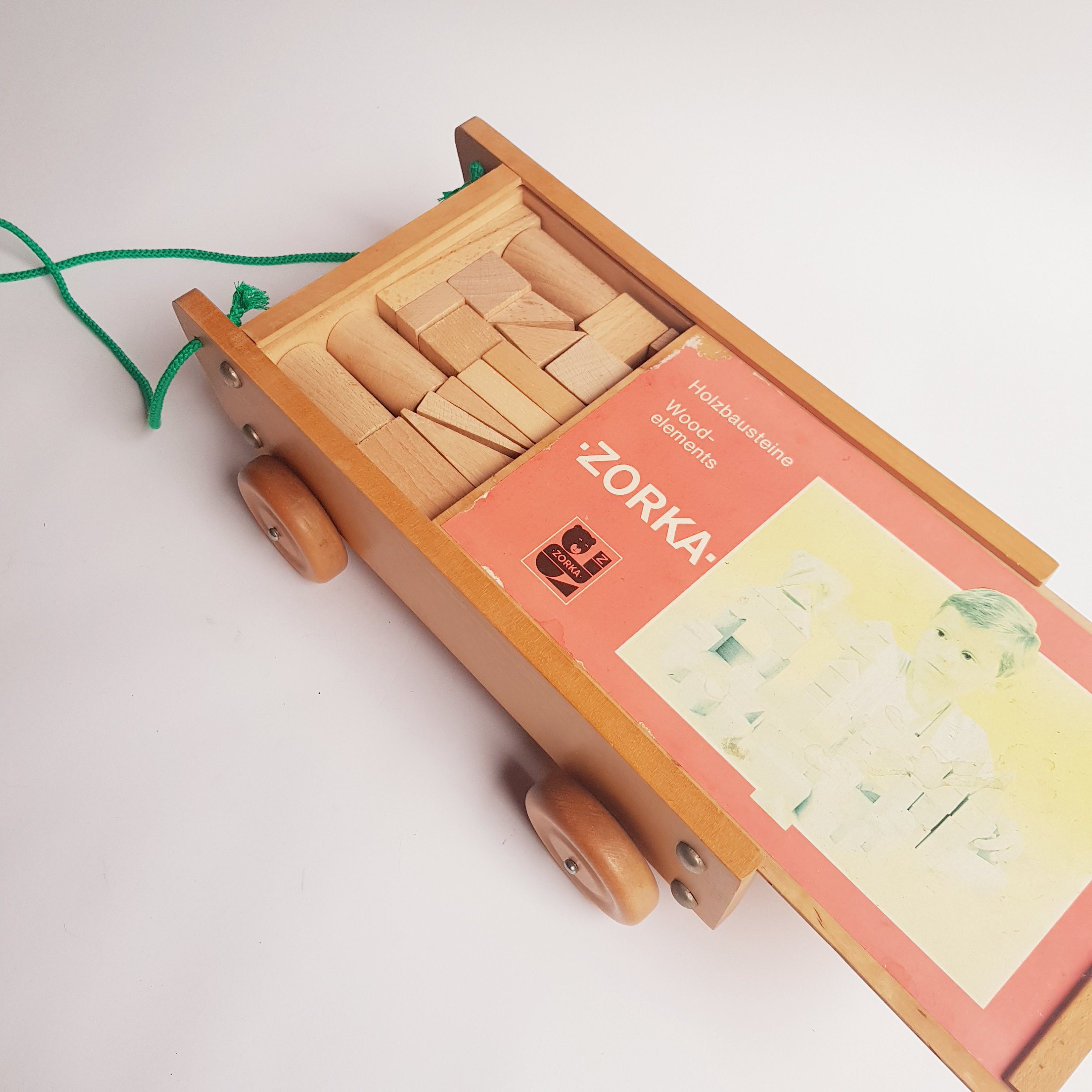 Vintage Wooden Cart With Building Blocks Waldorf Toy Etsy Canada